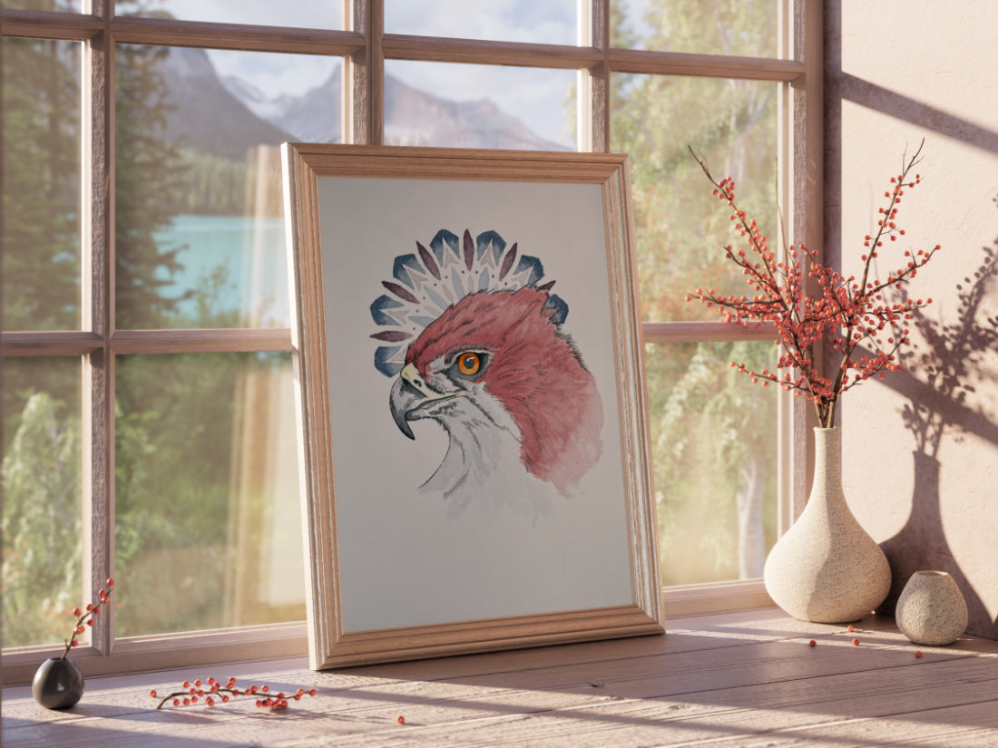 This painting features a hawk set within a circular mandala form. It was created to explore clarity and focus without intensity or noise. The finished piece has a calm, watchful presence and suits spaces where you want something steady, balanced, and quietly strong.