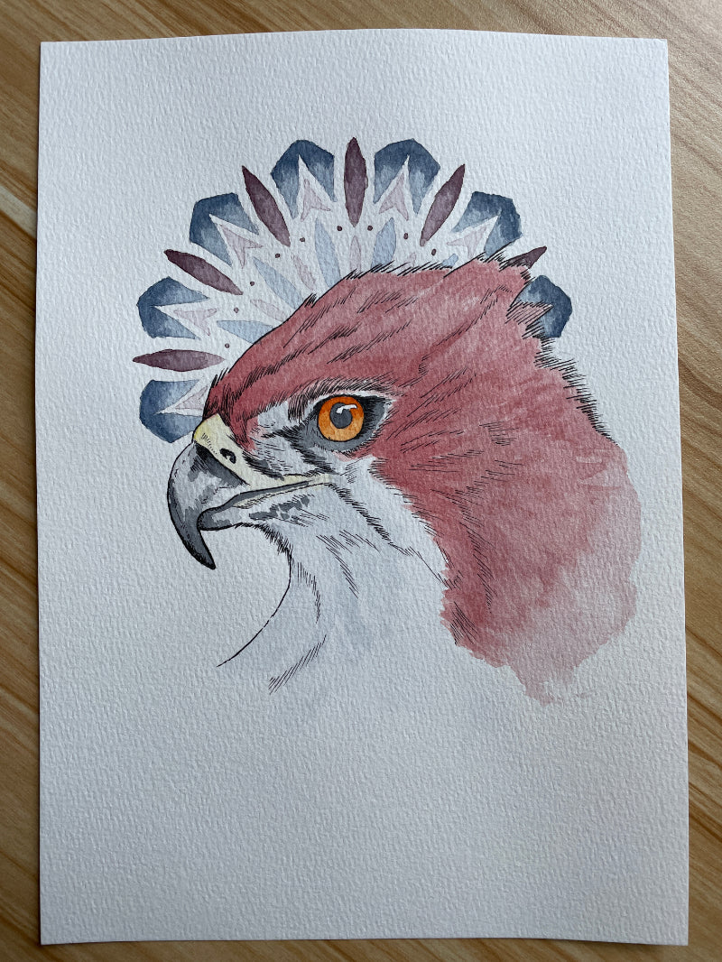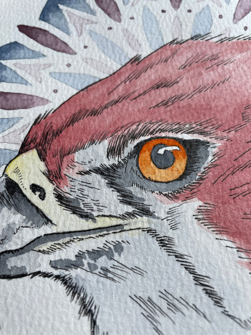 “Eyes of the Sky” unites the hawk’s clear focus with the stillness of the mandala — a balance of sight and calm.