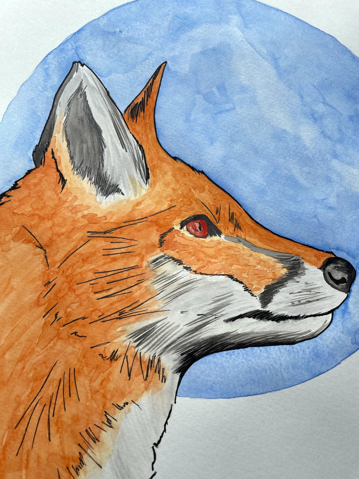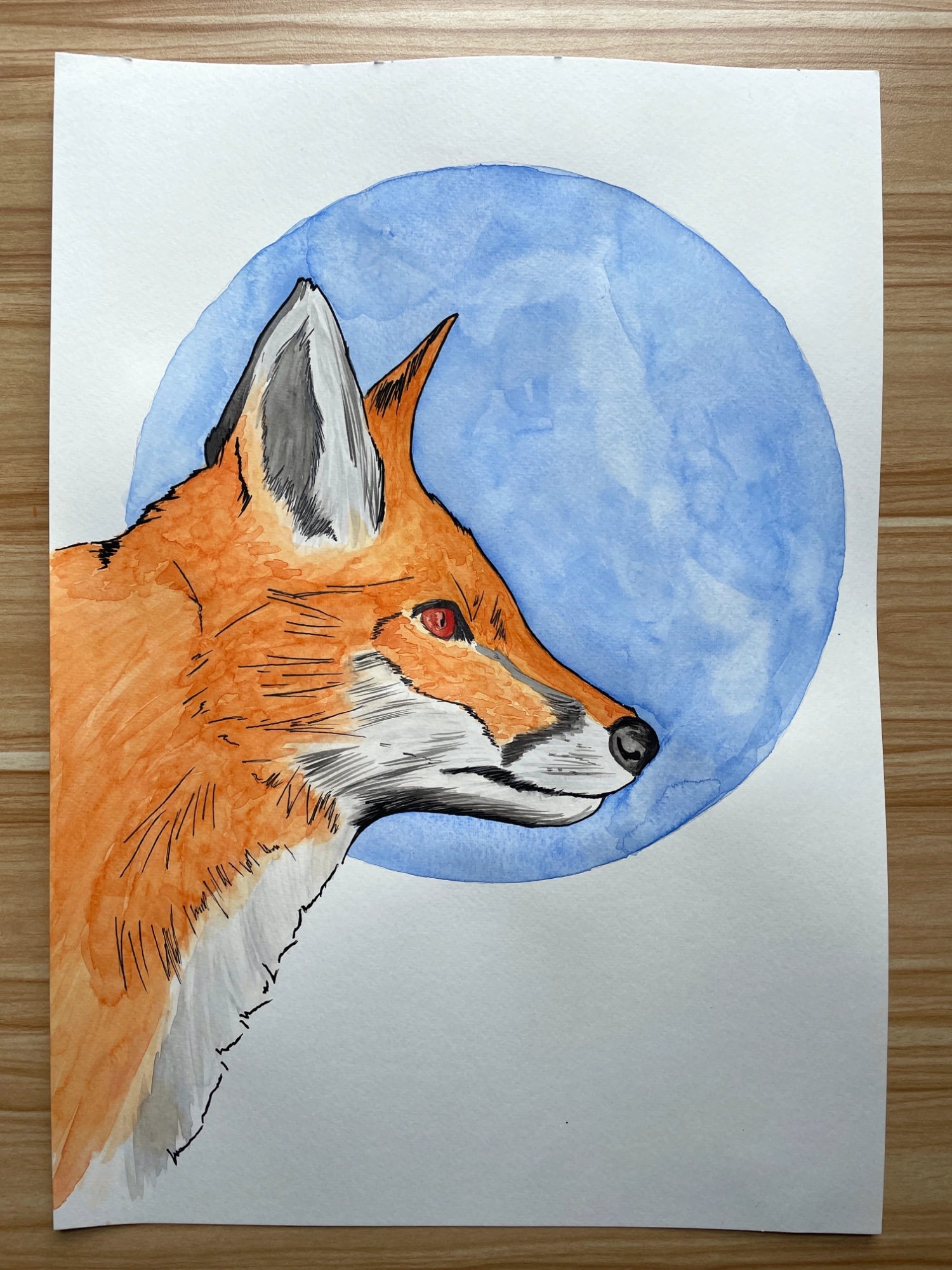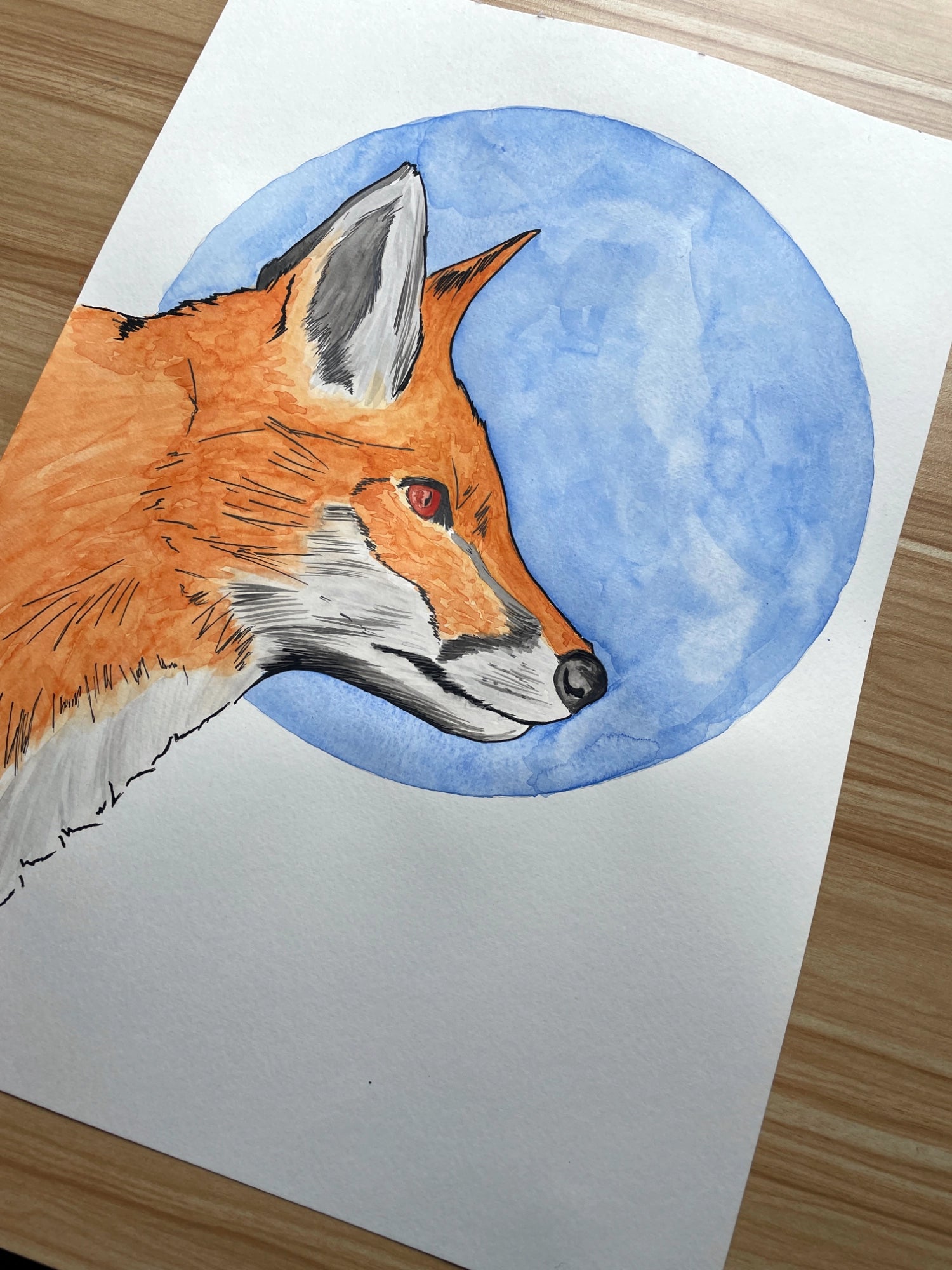 🦊 Fox with Blue Sun – A3 Original Watercolour