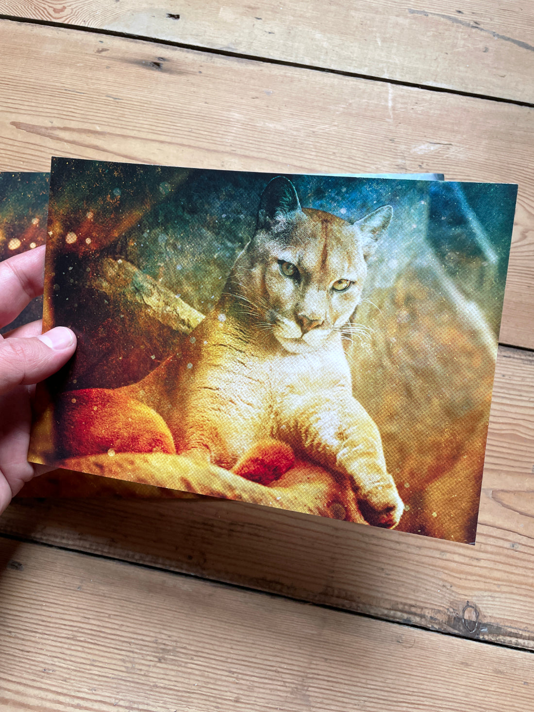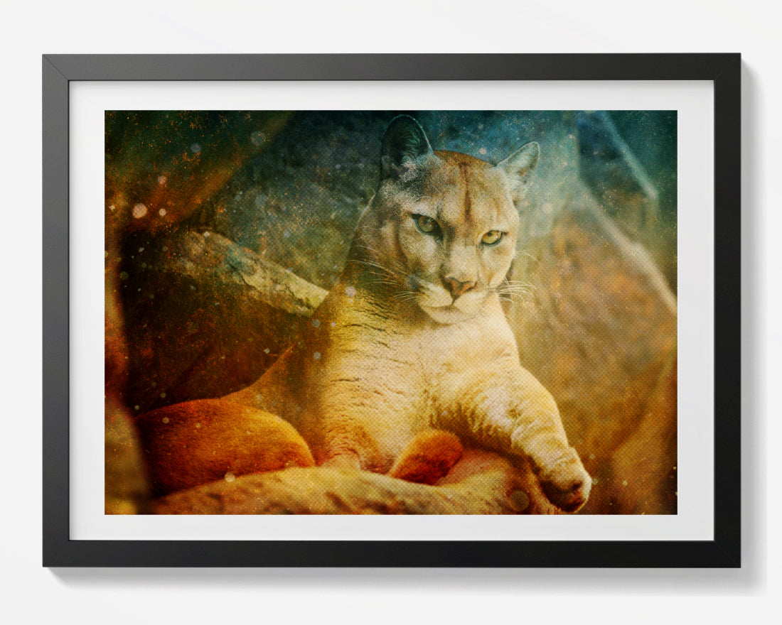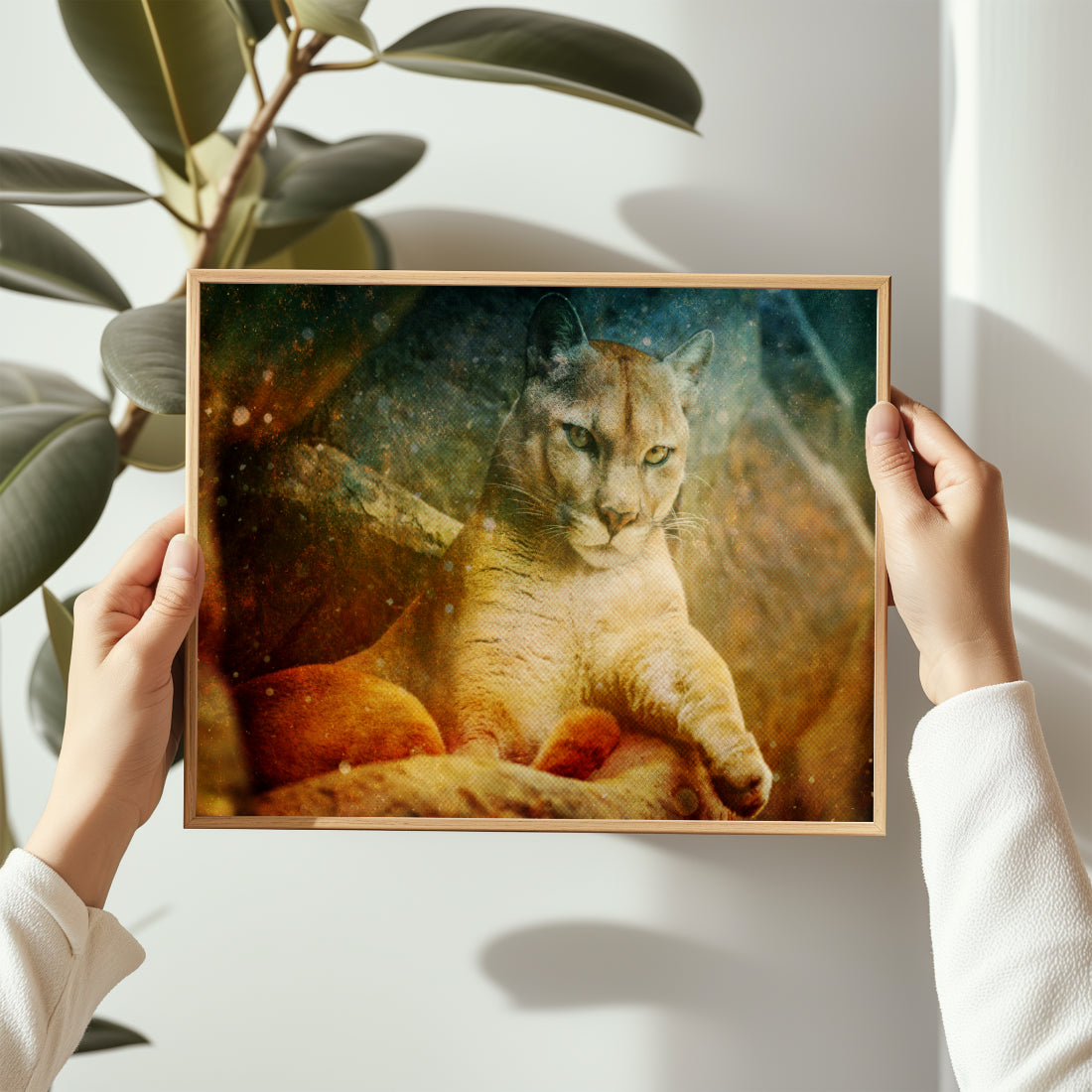 Experience the captivating essence of the wild with "Hunter," a stunning cougar print that embodies the beauty and strength of nature.