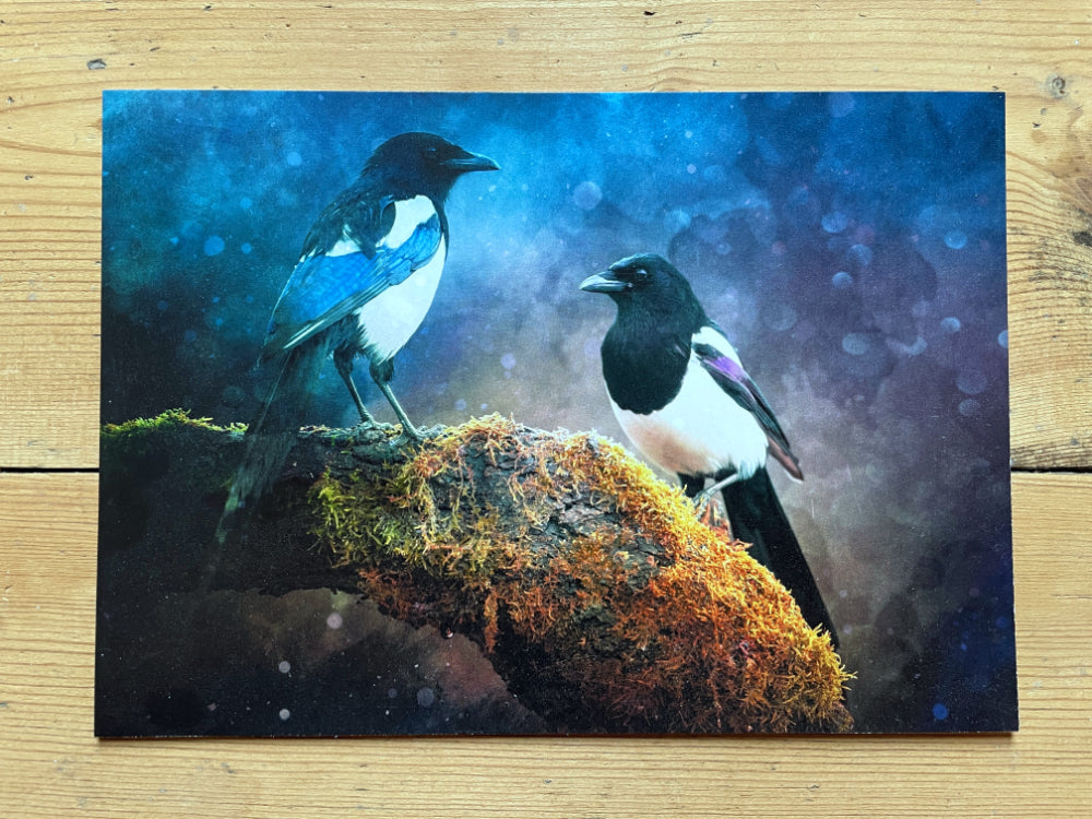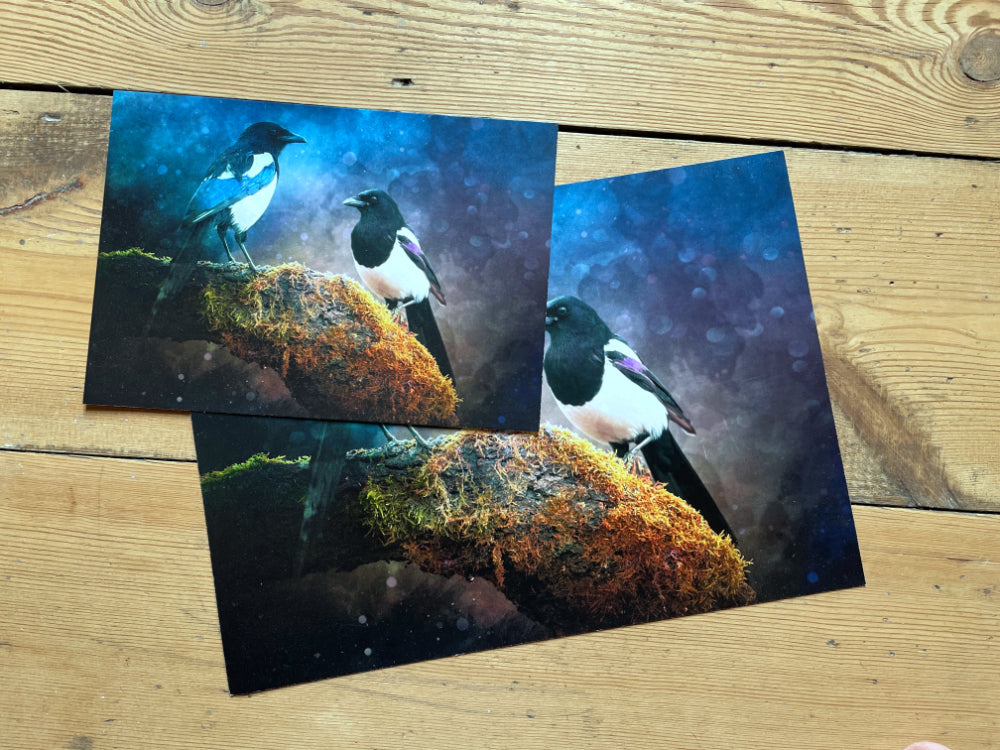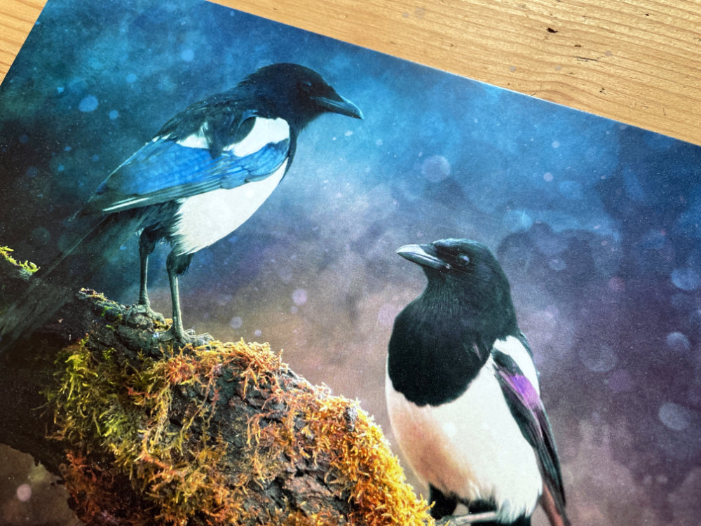 This is an absolutely gorgeous print, it's captured the wonderful colours of the feathers and the way that the one magpie is gazing at the other it's clearly a pair that has mated for life.