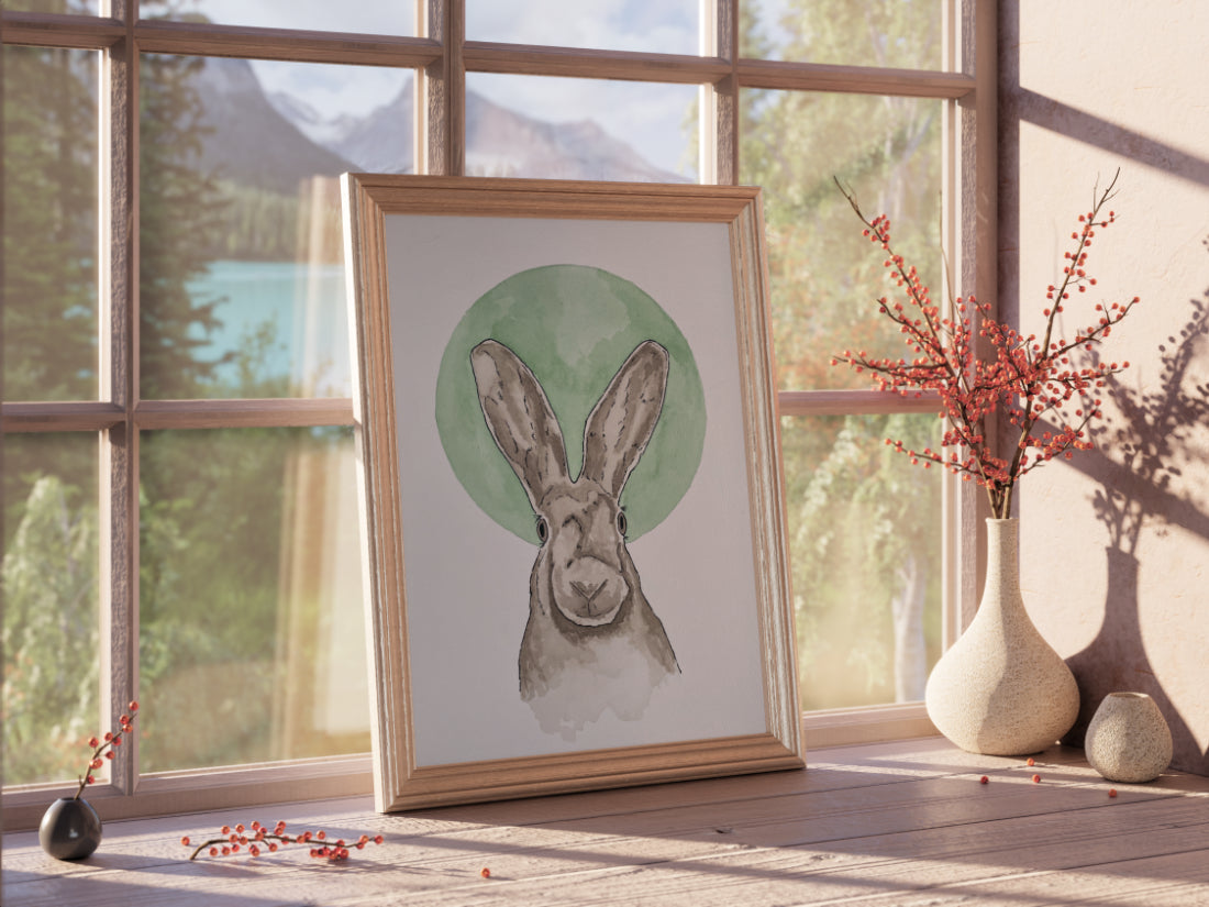 This painting features a resting hare shown in a quiet, attentive state. It was created to explore stillness and presence rather than action, allowing the image to develop slowly through restrained colour and patient brushwork. The finished piece has a calm, settled presence and suits spaces where you want something gentle, balanced, and quietly reflective.