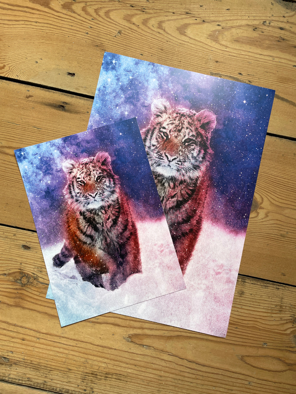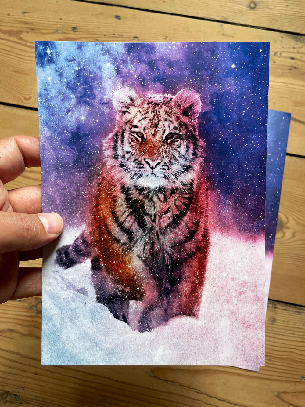 You can get the print in two types of paper: Thick gloss cardstock or luxurious Hahnemühle Photo Rag 320gsm.